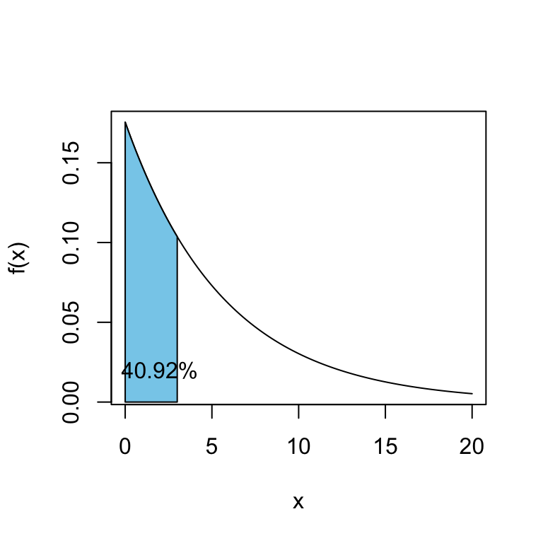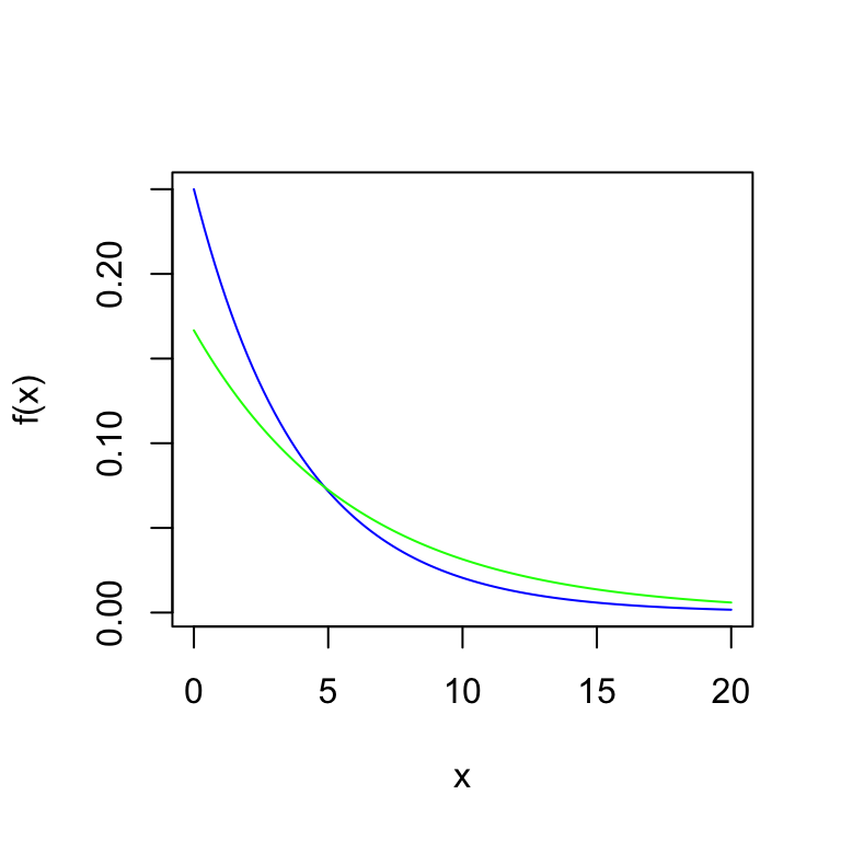 Suponga que \(X\) denota el tiempo transcurrido entre 2 temblores en Chile, y \(X\sim Exp(\theta=3.5\text{ meses})\), y \(Y\) denota la misma variable para Colombia con \(Y\sim Exp(\theta=6.7\text{ meses})\).