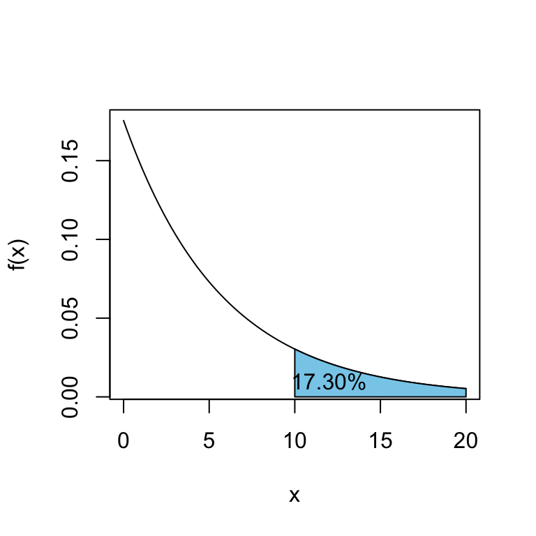 Suponga que \(X\) denota la vida útil de una cierta marca de lavadora, y \(X\sim Exp(\theta=\ 5.7\ años)\).
