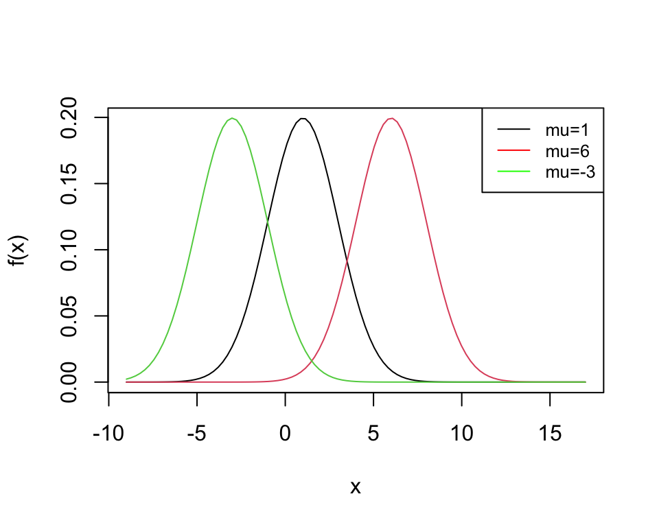 La forma de la función de densidad es definida por los dos parámetros: \(\mu\) y \(\sigma\)
