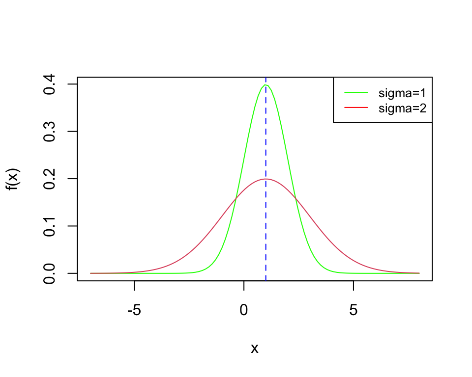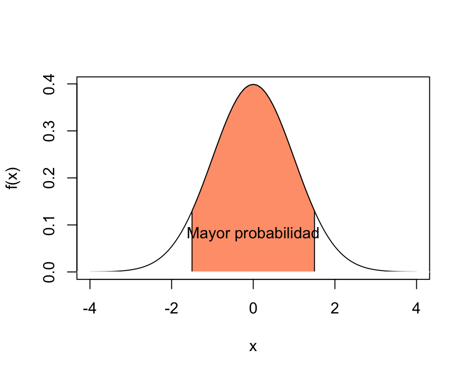 El segundo parámetro \(\sigma\) determina qué tan concentrada está la variable alrededor de \(\mu\).