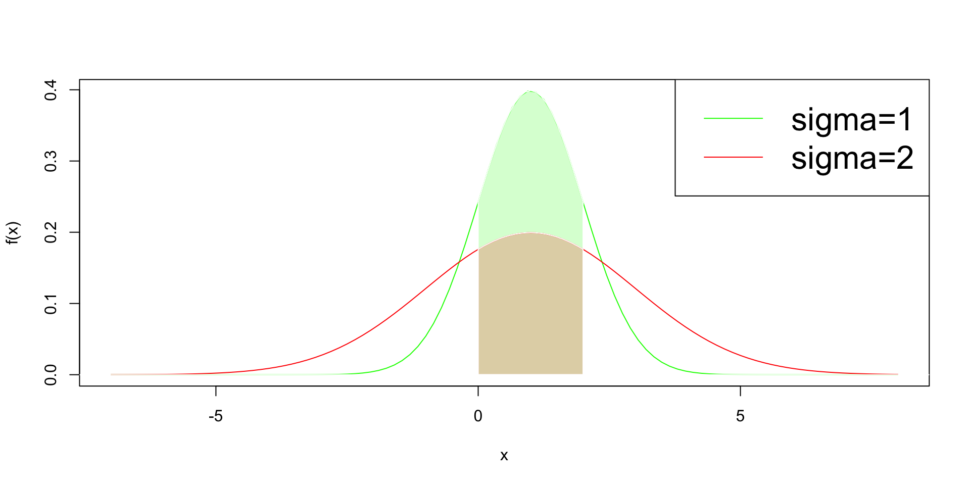 En ambas gráficas, los valores de \(X\) están concentrados alrededor de 1, pero los de \(\sigma=1\) están más concentrados que \(\sigma=2\)