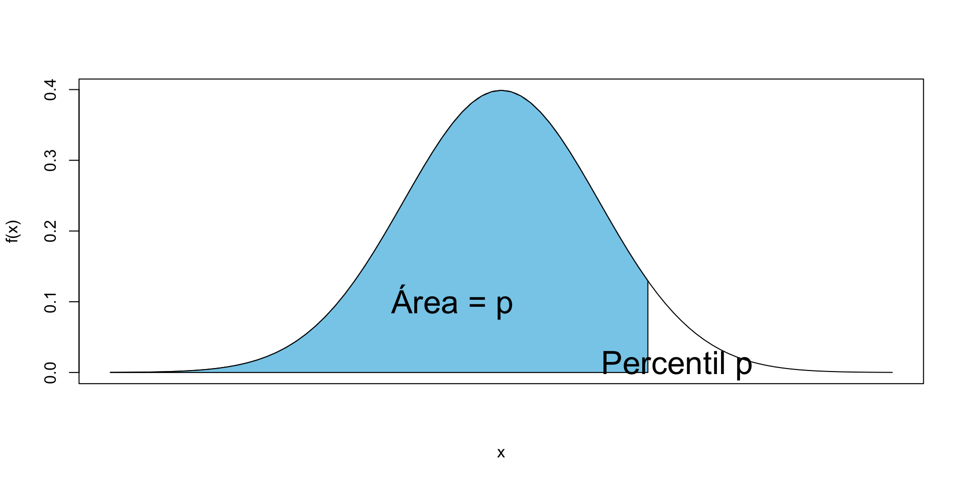Definición: el percentil \(p\) de una distribución es el valor de la variable que tenga probabilidad acumulada (hacia la izquierda) \(p\).