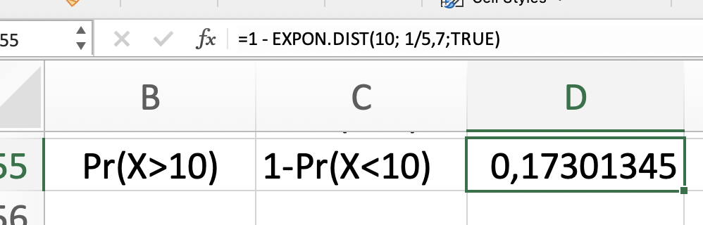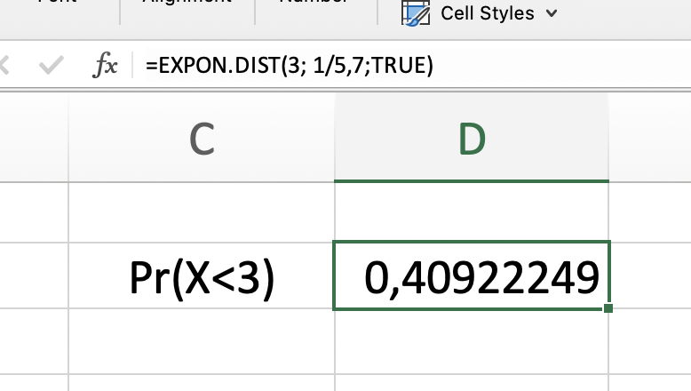 En Excel, usar la función EXPON.DIST