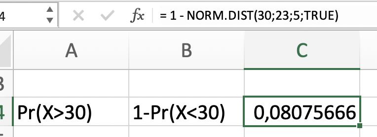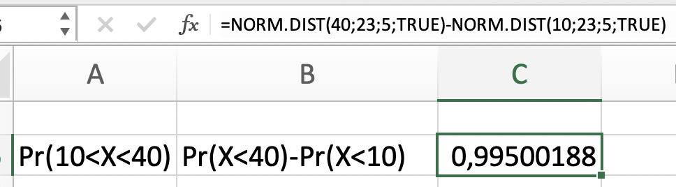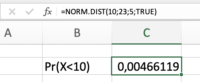 En Excel, usar la función NORM.DIST