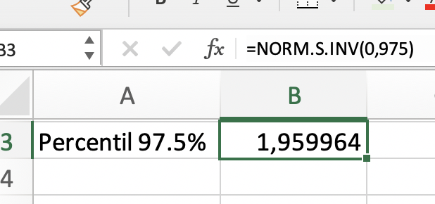 En Excel: usar la función NORM.S.INV