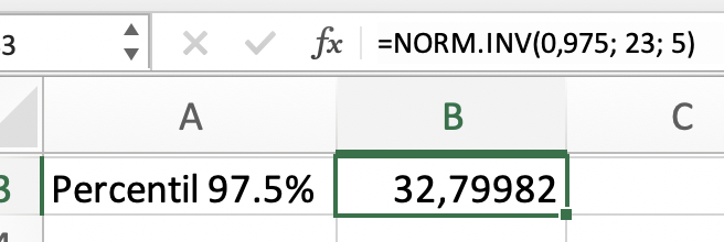 Percentil 97.5% de la distribución \(N(\mu=23,\sigma=5)\)