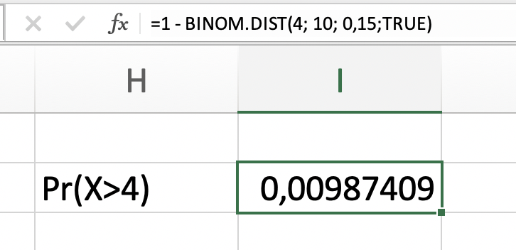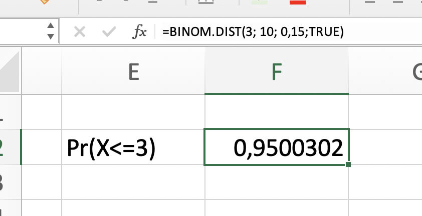 Cálculo de probabilides en Excel, usar la función BINOM.DIST